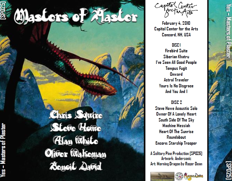 | A SolitaryPine Prod. (SP025) - The title refers to the plaster falling off the ceiling during the show 1.01 Firebird Suite (2.47) 1.02 Siberian Khatru (10.29) 1.03 I've Seen All Good People (8.49) 1.04 Tempus Fugit (6.37) 1.05 Onward (5.08) 1.06 Astral Traveller (9.28) 1.07 Yours Is No Disgrace (13.39) 1.08 And You and I (11.19) ============================== 2.01 Intersection Blues ~ The Little Galliard (5.53) 2.02 Owner Of A Lonely Heart (6.03) 2.03 South Side Of The Sky (12.29) 2.04 Machine Messiah (11.59) 2.05 Heart Of The Sunrise (12.17) 2.06 Roundabout (9.48) 2.07 Starship Trooper (12.42) ============================== Yes (Howe, Squire, White) Thursday, February 4, 2010 Capitol Center for the Arts Concord, New Hampshire, USA "Masters of Plaster" Taper/Mastering: SolitaryPine Artwork: Andersonic Location: Audience - Balcony Source: CSB Mics -> BB w/BRF On -> Edirol R-09 [WAV 24bit/48kHz] Conversion: SDHC Flash -> WAVs -> PC - Editing/Tracking - FLAC Editing: Cool Edit Pro 2.1 (iZotope Ozone 4) > WAV (dithering 16/44.1) > CD Wave > FLAC level 8 Checksums: TLH ~ FLAC fingerprints & MD5 Tagging: Fubar 2000 A SolitaryPine Production [SP025], www.SolitaryPine.net "For the Love of the Music" DISC 1 (68:16) 1.01 Firebird Suite (2.47) 1.02 Siberian Khatru (10.29) 1.03 I've Seen All Good People (8.49) 1.04 Tempus Fugit (6.37) 1.05 Onward (5.08) 1.06 Astral Traveller (9.28) 1.07 Yours Is No Disgrace (13.39) 1.08 And You and I (11.19) DISC 2 (71:11) 2.01 Intersection Blues ~ The Little Galliard (5.53) 2.02 Owner Of A Lonely Heart (6.03) 2.03 South Side Of The Sky (12.29) 2.04 Machine Messiah (11.59) 2.05 Heart Of The Sunrise (12.17) 2.06 Roundabout (9.48) 2.07 Starship Trooper (12.42) Band: Chris Squire Steve Howe Alan White Oliver Wakeman Benoit David NOTES: It is my utmost pleasure to bring you this release. This was the 2nd show of the Winter 2010 leg of the tour. The boys were sounding and looking good as usual. It was great to see more on stage energy by Steve and Benoit. They all definitely seemed tighter and also more relaxed compared to the "In the Present" tour. I look forward to hearing some new studio material from this line up. Maybe they will also change up their set list a bit as well. Some folks are disappointed in having the same set list as before. The venue was interesting. Tight for tall people like myself, but nice. Pretty good sound. Not too loud, and not too quiet. Although, like last tour, Benoit and Oliver were sometimes buried in the mix. Not the best seats in the house for taping, but not bad. There was no "sweet spot" for the recorder this time, so I had to keep the gear on me the whole show. Hence it's not the best recording possible, but also not bad. I did edit out some of the in-between song audience noise (loud talkers) that occurred, so if you hear edits during the clapping, that is what happened there. None of the songs were altered in any way. The story behind the title of this release is interesting. I went through a few title possibilities before the show, including "Captal YES", but Winston kindly pointed out the theater name was "Capitol Center", not "Capital Center", so that title was forgotten. Then during the show, after Tempus Fugit, Benoit stated that "You know tonight this place is gonna rock, there's plaster falling off the ceiling right now". Small chunks of plaster were falling and creating little round white blotches on the floor in front of Chris. Needless to say, Chris avoided traveling in that area for the remainder of the night (and his bass pedal volume was turned down a bit to boot probably to prevent more falling debris). Needless to say, the venue is still standing, but in need of some repair ;-) As a result, on the car ride home we had two potential titles: 1) Feeling the Ceiling 2) Masters of Plaster By vote we decided on the latter, hence the name is born. You can even hear us speak this title in the recording at a couple of spots. I want to thank Steve K., Lewis, Tim G., and Ernie G. for helping to make this night possible. I also want to thank Winston (Andersonic) for doing the artwork for this release. As you may recall, he did the artwork for my SP012 release of YES "Alien Ballroom". Yet another splendidly amazing job! Dank je! Please visit his website at www.yesfocus.org --- The following keywords will help you locate Yes torrents on tracker sites: Torrent Keyword: yestorrent You can also search for 'Roundabout'. Enjoy! --- TRADE FREELY! This recording should never be sold (or bought)! Please do not trade in MP3 or other lossy formats. Thanks to those who pay it forward and share it back. Please seed seed seed! Please support Yes by seeing them live, and purchasing their albums. Visit their website at www.yesword.com, and at www.yesfans.com forums. Upped to Dime on 2/5/2010 |
