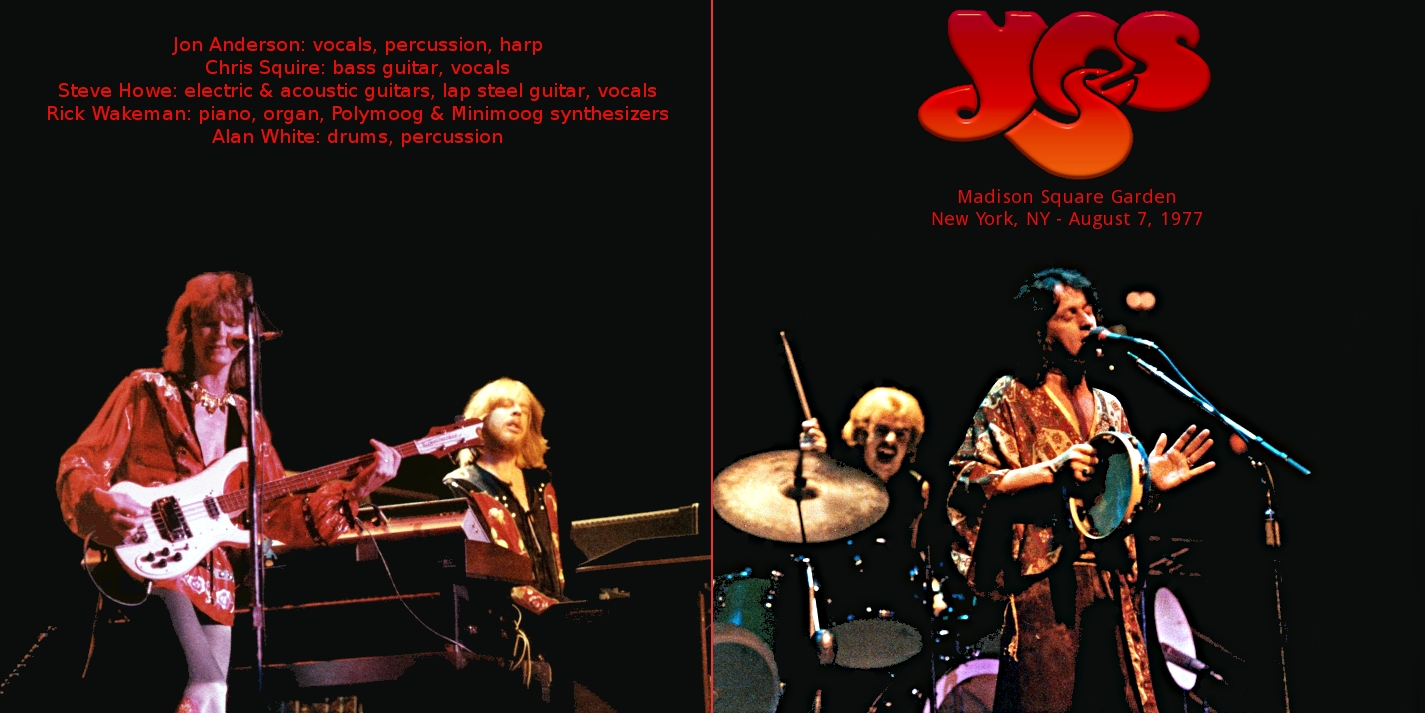 | Taper: Lostbrook - Mastering: CQ 1.01 Firebird Suite (2.51) 1.02 Parallels (6.31) 1.03 I've Seen All Good People (7.37) 1.04 Close To The Edge (20.44) 1.05 Wonderous Stories (4.31) 1.06 Colours Of The Rainbow (0.59) 1.07 Turn Of The Century (8.53) 1.08 And You And I (10.03) ============================== 2.01 Flight Jam (3.14) 2.02 Awaken (19.34) 2.03 Starship Trooper (14.02) 2.04 Roundabout (11.13) 2.05 Yours Is No Disgrace (14.58) ============================== Yes: The Lostbrook Tape Series Volume 121 The Yes party continued on our third and final night at Madison Square Garden. After "Parallels," you'll hear Jody say, "Nice Howe seats!" - a reference to our fourth row location directly in front of Steve Howe. This was our fifth Yes concert in six days in two different cities. Reasonable people might have called it quits after this, but Reason took a vacation during the Summer of '77. In the end, we were punished for our gluttony. See Volume 122 for details. August 7, 1977 Madison Square Garden New York, NY USA Recording Equipment: Internal Mic>Sanyo M2533 Tape Deck>(2)TDK SD C90>Alesis TapeLinkUSB> Audacity>WAV Taper: Lostbrook Mastering: CQ Artwork: ethiessen1 |