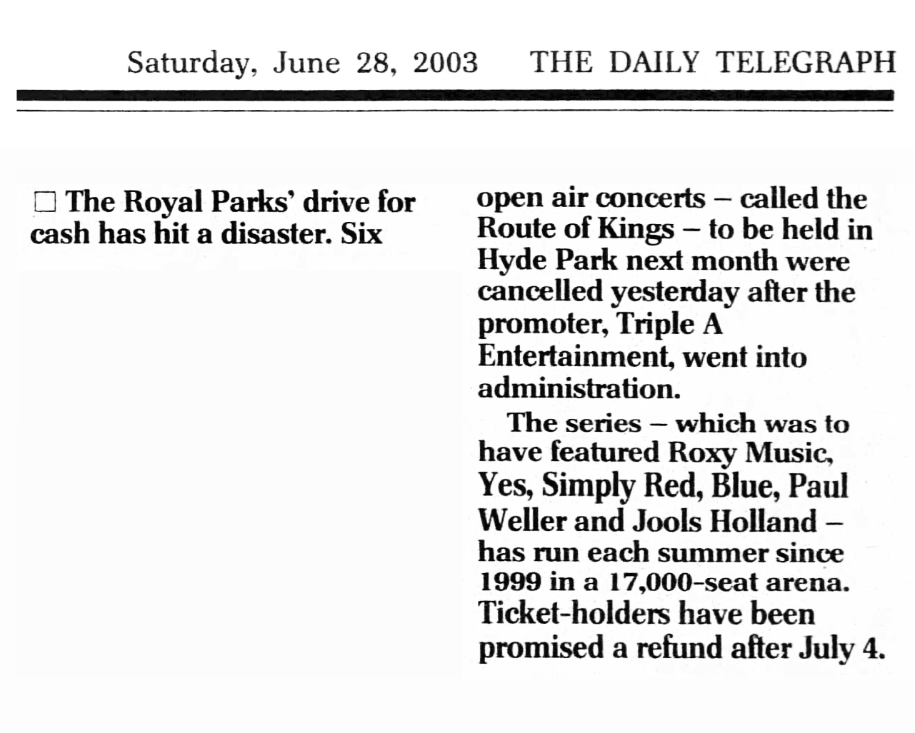 Show Cancellation - Daily Telegraph - 2003-06-28