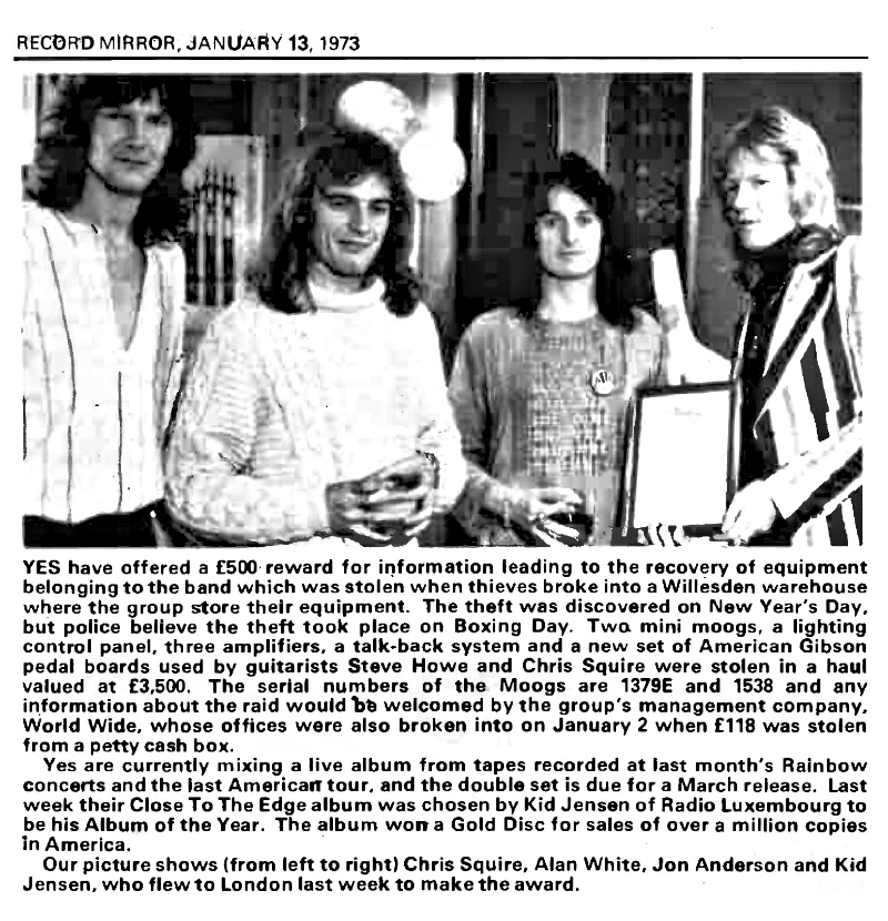 "Yes get back stolen gear" - Record Mirror - 1973-02-10