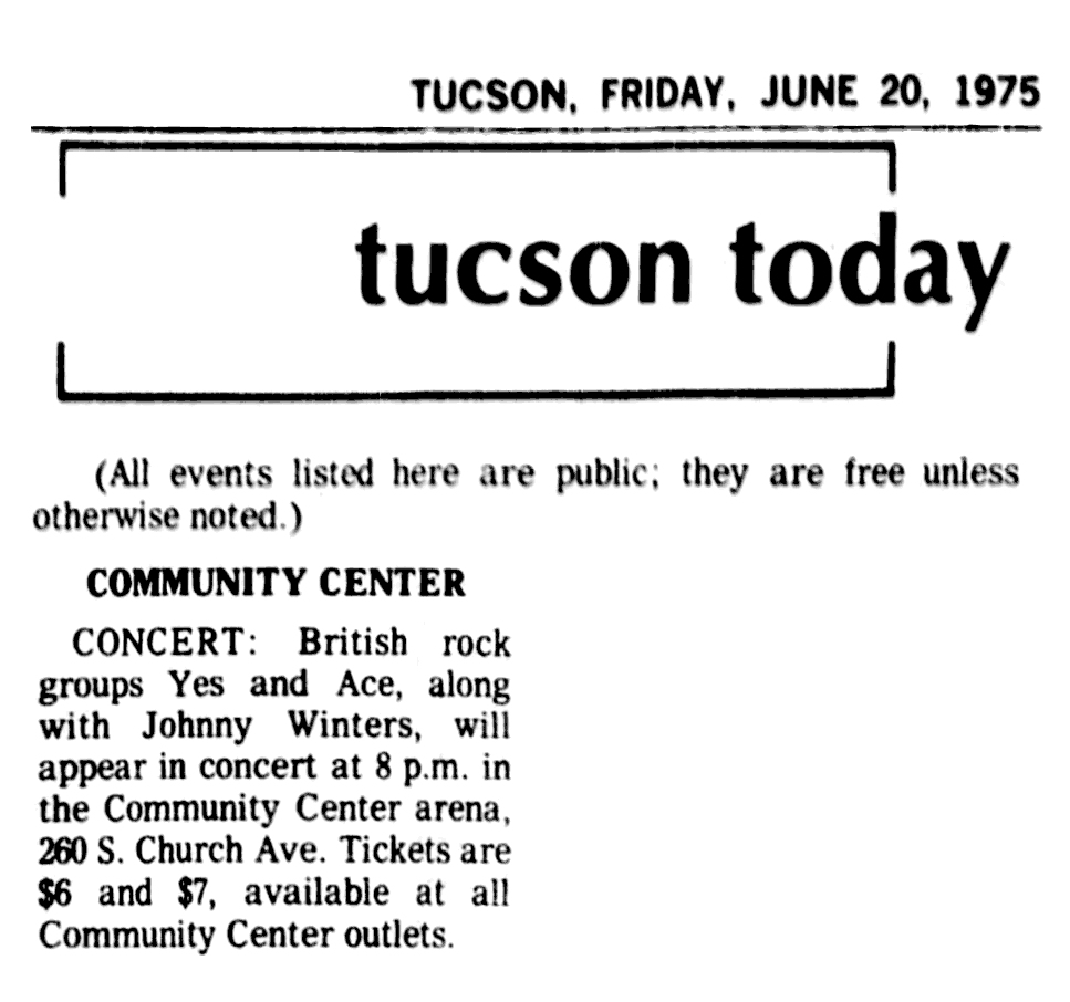 "No maybe -- Yes rock gig was right on" - Concert Review - Larry Fleischman - Tucson Citizen - 1975-06-21