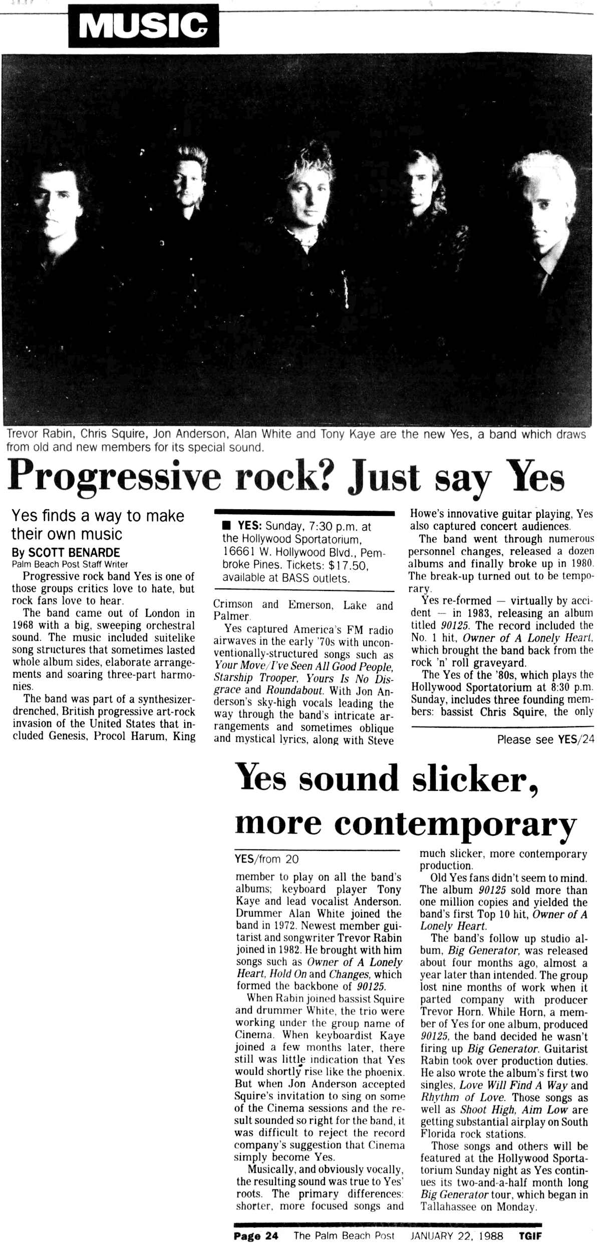 Trevor Rabin Interview - Scott Benarde - Palm Beach Post - 1988-01-24